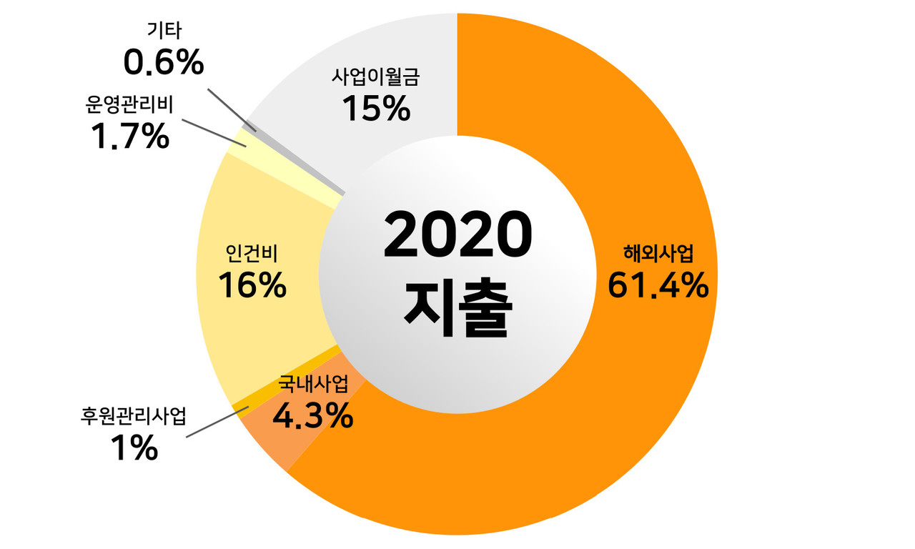 | 해외사업 | 701,667,795 | 61.4 | 해외아동결연, 교육지원, 봉사단, 구호개발 |