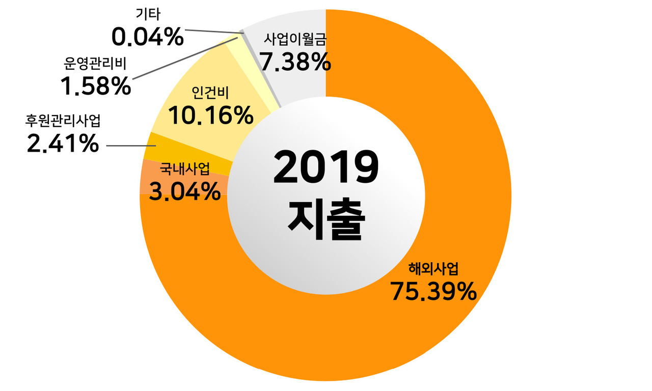 | 해외사업 | 802,356,569 | 75.39 | 해외아동결연, 교육지원, 봉사단, 구호개발 |