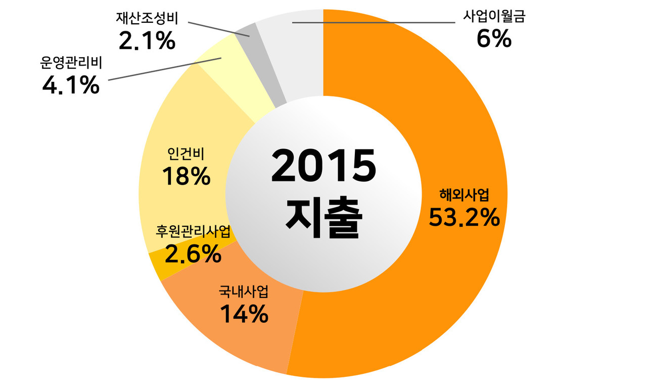 | 해외사업 | 190,022,221 | 53.2 | 해외아동결연, KCOC사업, KOICA사업 등 |