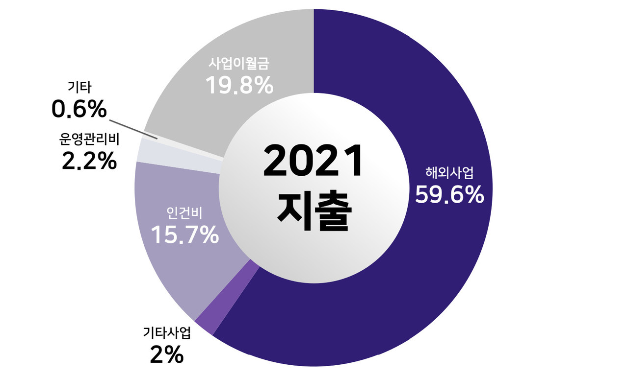 | 해외사업 | 301,490,050 | 59.6 | 해외아동결연, 봉사단, 교육지원, 구호개발 |
