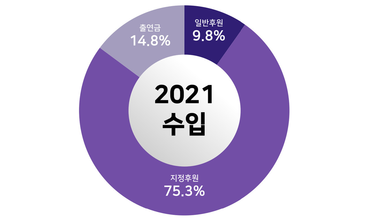 | 일반후원 | 49,616,000 | 9.8 | 정기, 일시 후원금, 회비 |